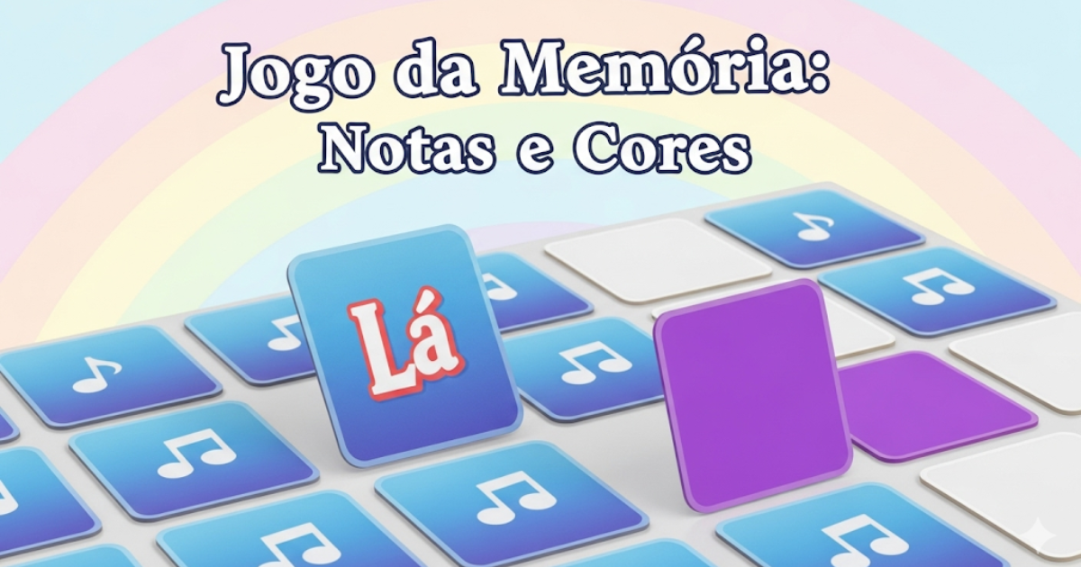 O que é: Um jogo da memória online onde o jogador precisa combinar as cartas com os nomes das notas musicais (ex: “DÓ”) às suas respectivas cores (ex: cartão vermelho).
